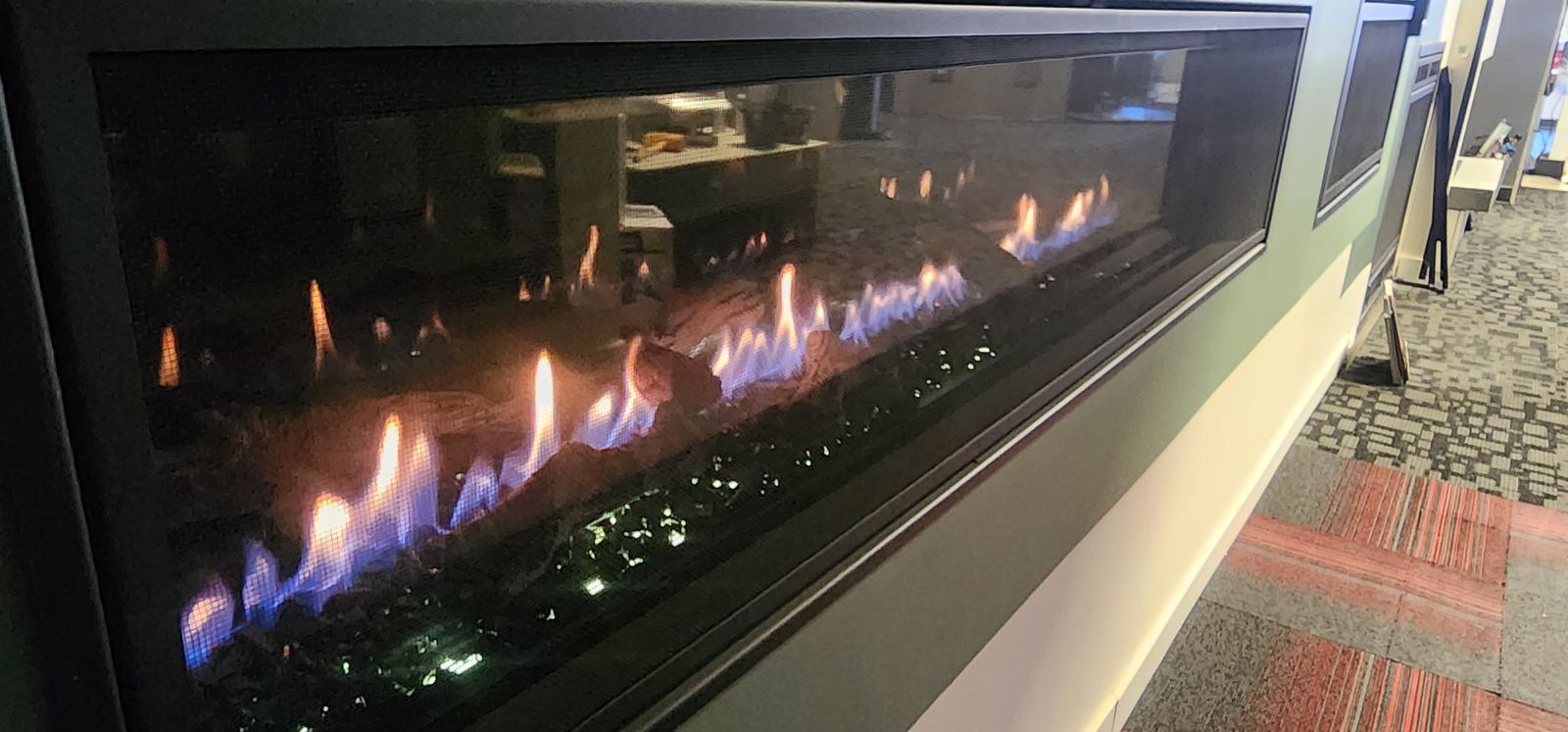 Médias verres noirs intérieur , devanture clean-face + panneau en verres réfléchissants , ensemble de bûches de grèves et télécommande inluse